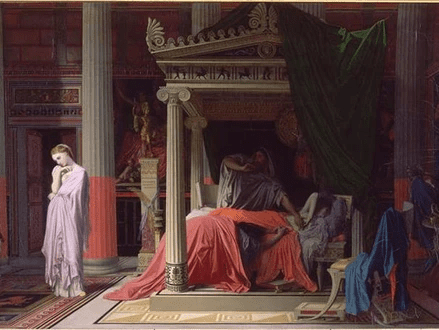 Jean Auguste Dominique Ingres’ 1840 painting, The Sickness of Antiochus or Stratonice and Antiochus, depicts the illness of the biblical figure. Currently, it is housed in Chantilly’s Musée Condé.