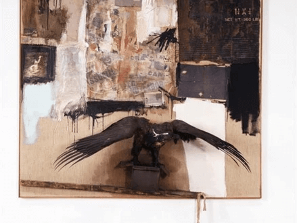 Pieces of wood, a pillow, a mirror, and a stuffed bald eagle are just some of the materials that make up Canyon, one of Rauschenberg’s most famous and divisive assemblages.