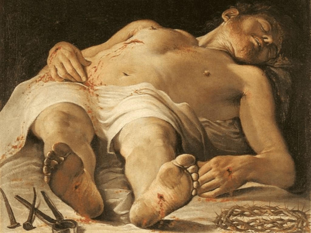 The Italian Baroque painter Annibale Carracci painted The Corpse of Christ somewhere between 1583 and 1585. It is now on display in the Staatsgalerie in Stuttgart, Germany.