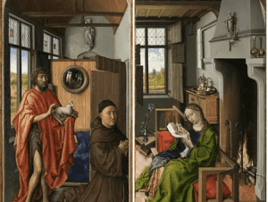 It’s more likely that the massive scale of the natural and interior elements, as well as the young woman’s attentive but essentially relaxed posture, are conveying her innocence. If she isn’t particularly young, her arms aren’t large enough to open or close the window in front of her, and one wonders whether her arms would even reach the catches to do so. He has created a narrative and thematic intensity simply by placing the subject and scene in the right place.