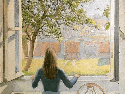 When it comes to interpersonal intensity, this painting of a younger woman is mellow, but it still represents a psychological state that is more akin to the romantic sublime, as a result of Balthus’ trips to the French countryside and Switzerland. Frederique Tison, a young model who worked with him at the time, appears in Girl at a Window (1957).