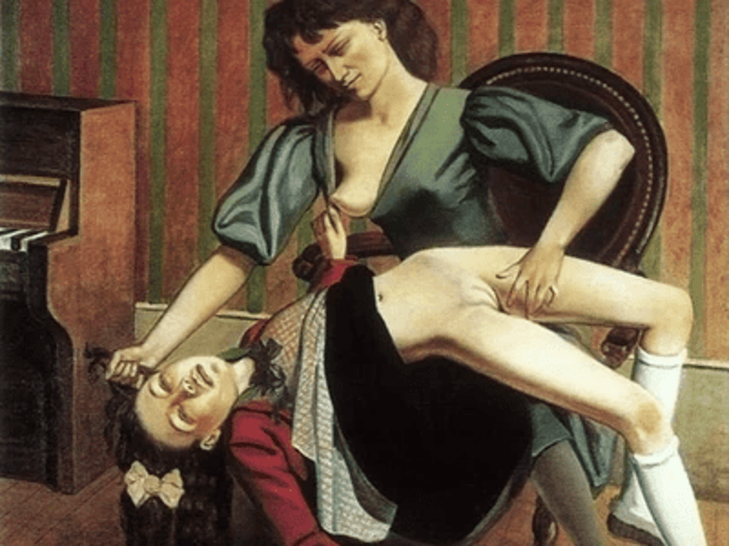 This is a great example of how his symbolic works caused some viewers to feel uncomfortable and is an example, if not the last one, of how he used young girls in his paintings. This work was originally presented during one of his earliest exhibitions in Paris, but was not on display in the public as it was last seen in New York in 1977 with the exposed lower body of a prepubescent girl and the hinting of a sexual alliance with the lady on whose lap she rested.