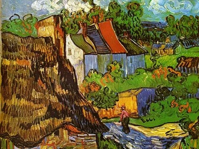 Many of van Gogh’s best paintings were created at Auvers, northwest of Paris in May 1890, when he relocated from the south of France. The scenery of early summer can be seen in the houses of Auvers. From above, the dwellings’ tiled and thatched roofs appear as a patchwork of colours in a flattened tapestry.