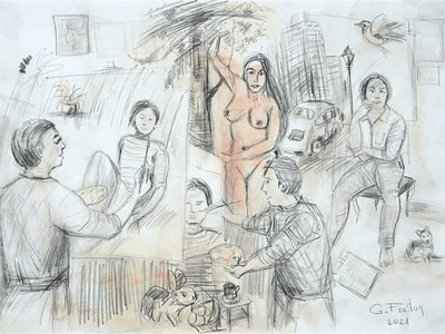 The artist at his workshop is unaware that he has been placed on lockdown, and he continues to work. Canvas, colours, and lines are all just as they have always been. While painting is always enjoyable, it’s also a great opportunity to listen to the sounds of the outside world – birds, automobiles, and people.