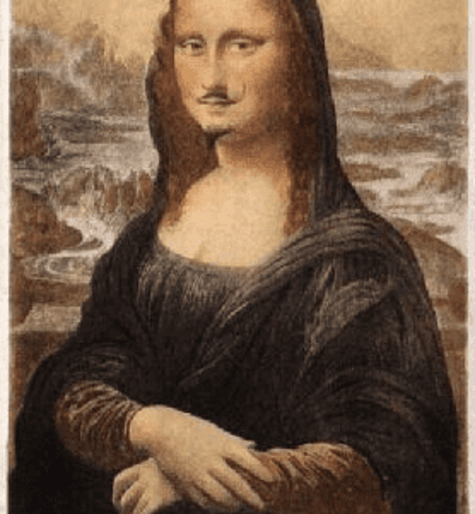 While most of Duchamp’s readymades start with a depiction of a famous work of art, with L.H.O.O.Q he begins by discrediting it and knocking it off its pedestal in a humorous manner.