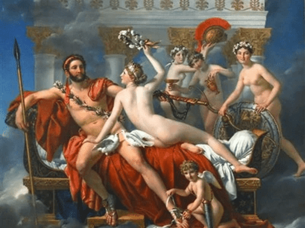 He relinquishes control and succumbs to Venus’s seduction. In most cases, David used members of the Théâtre de la Monnaie as his models. Marie Lesueur, Lucien Petipa, a subscriber, and even the Prince of Orange’s mistress were all used to represent Venus, Cupid, and Mars, respectively.