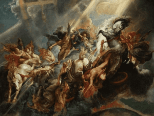 A long, slack robe of a chestnut brown colour drapes over him. Angel with flowing, white hair appears behind the evangelist from the left, places his right hand on his shoulder, and begins to speak. Size and proportions of one half of a human being. Cf. 172 and 174-5. Canvas, 38 by 32 inches with the signature “Rembrandt f. 1661″ in the top right corner. The works of Vosmaer (pp. 361, 562), Bode (pp. 523, 594), Dutuit (p. 35), and Michel (pp. Claessens’s etching is housed in the Musée Francais, while Oortman’s is in the Musée Napoléon; both are shown in Filhol (viii.509) and Landon (ii.57). Displayed as No. 2538 in the Louvre’s 1907 catalogue.”