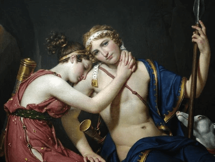 Jacques-Louis David painted The Farewell of Telemachus and Eucharis in 1818, and it now resides in the J. Paul Getty Museum. In his exile in Brussels, count Franz Erwein von Schonborn-Wiesentheid commissioned the painting. These are two characters from Fénelon’s novel Les Aventures de Télémaque, which was inspired by Homer’s Odyssey. It was the artist’s final depiction of a mythological couple; it served as a companion piece to Love and Psyche.