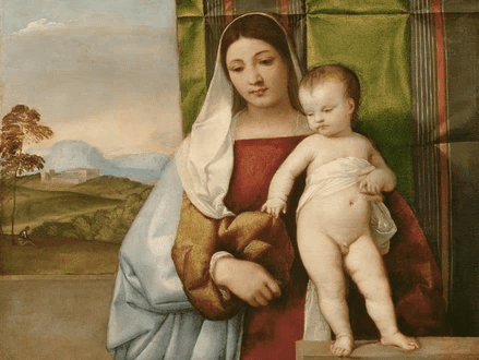 An oil panel painting depicting The Gipsy Madonna by Titian, now housed in Vienna’s Kunsthistorische Museum, is known as the Gypsy Madonna. It’s a painting meant for a home or office, not a religious institution.