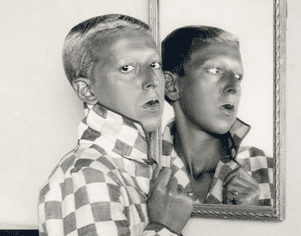 A mirrored-reflection doubles Cahun’s boldness and androgynous appearance. Rich in textures and tones, the image is bursting with life thanks to the checkerboard jacket, highlighted hair, and smooth, sun-kissed skin. Women’s vanity has been highlighted in art for centuries through the addition of mirrors, which have been utilised to show the subject from two different angles. The’real’ Cahun, on the other hand, glances away from the mirror and directly into the camera’s lens. Cahun defies the stereotype of a docile woman absorbed by her own adoration. The viewer is confronted with elements of deliberation, exploration, and self-assurance in this work. There is no vanity at work here. “‘refusing to be imprisoned in her own glass, Cahun resolved to live the fictional life within the carefully guarded walls of her own introverted mental theatre,” says art historian Shelley Rice. A mirror image of Cahun, the ‘false’ Cahun, appears to be looking out of the frame, maybe feeling more at ease in a fantasy-world than in the real one.
