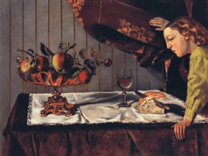 A Bigger Message is the finale of a series of works by Hockney inspired by Claude Lorrain’s 1656 painting The Sermon on the Mount. It was created relatively late in Hockney’s career. Lorrain, a French Baroque landscape painter (in English, just “Claude”), was one of Hockney’s idols. Known for innovating the genre and basing his work on observation, Claude has had a major influence on Hockney’s landscapes. Hockney spent three weeks digitally cleaning Claude’s painting on his computer in order to make the artwork.