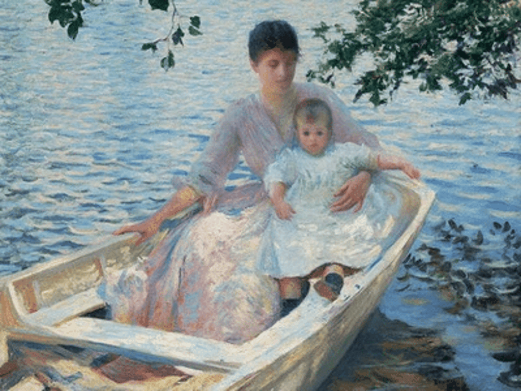 Mother and child in a boat by Edmond C Tarbell, 1892