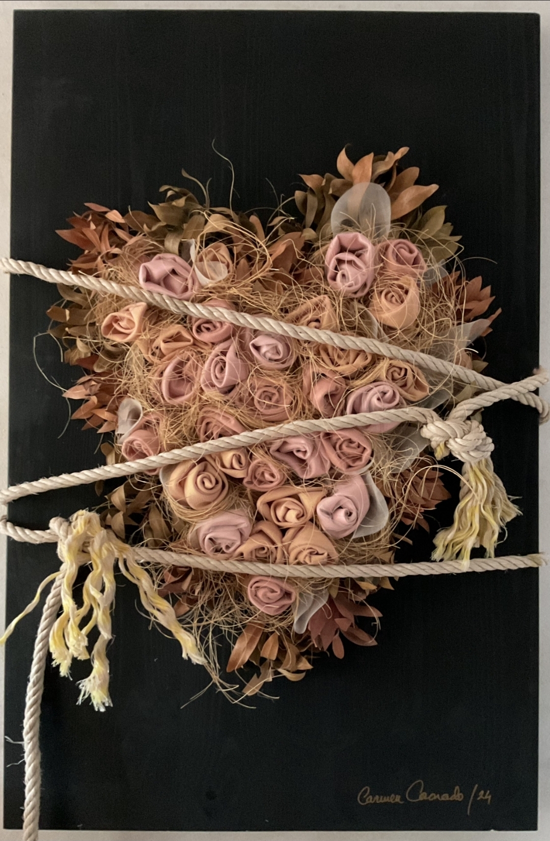 Every artwork is the result of a careful and demanding process in which I give everything a second life. I also use elements from nature that are no longer needed; that is why autumn is especially important for me, when I collect fruits, seed pods, seeds, branches, leaves (with their wonderful scent that lingers in my pieces), tendrils, and many other forms you might not even imagine.