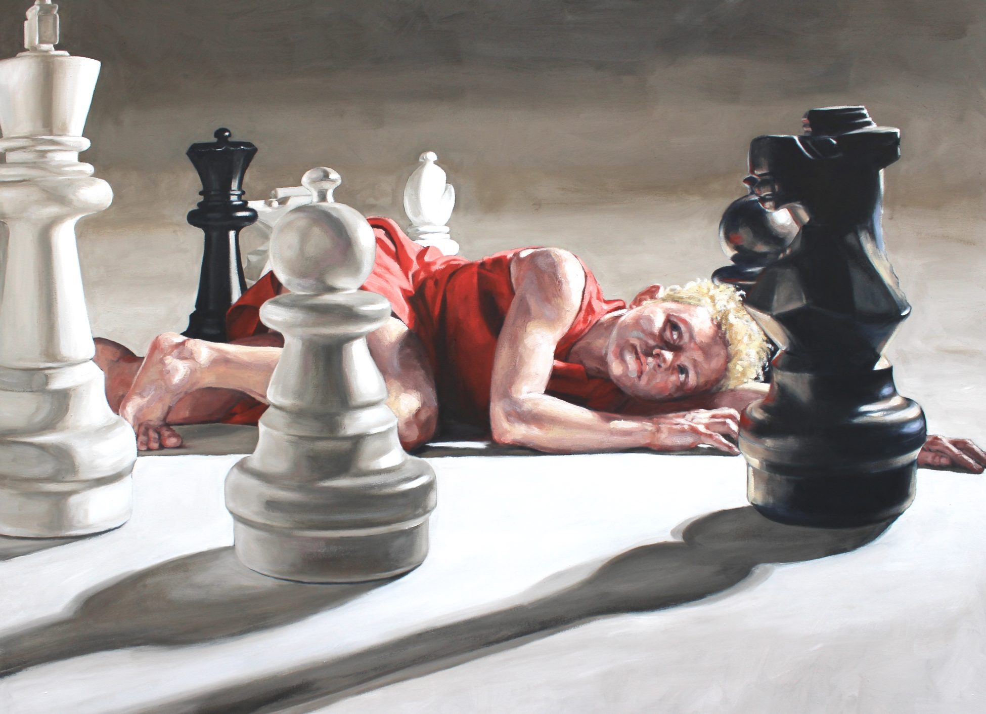 I was born in Harrogate, N. Yorks and graduated from St. Martin’s School of Art in Fine Art in London where I still live. I work in oil on canvas, and also draw regularly from life, an essential part of my practice. The human face and figure are the main inspiration for my work, and through these subjects, I seek to portray the human condition. Often there is an implied drama in my compositions, the subjects caught in a moment or predicament. The open-ended nature of these images asks of the viewer to bring their own interpretations and experiences to the picture. My paintings are densely worked in layers of oil paint, and I feel that I build the subject, almost like a sculpture. Although realistic from a distance, in proximity loose brushstrokes hold the marks of the brush as if still fluid and in movement.