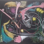 I love working on a black paper, the colours stand out. This image depicts two women lovers amongst flowers and grass. The black suggests a…