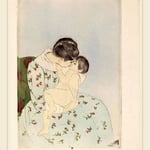 The intimacy, tenderness, and close bond of love between mother and child Two figures, a mother and child, dominate the vertical space. A seated woman…