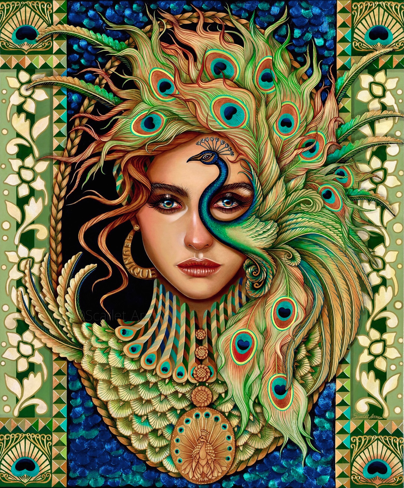 I’m Scarlet, a contemporary artist creating distinctive portraits that celebrate feminine beauty and self-expression. Blending figurative art with intricate decorative elements, my work is all about depth and detail. Painting primarily with acrylics on canvas and fabric, I combine rich textures, intricate patterns, and vintage-inspired accents, evoking a sense of nostalgia. I love layering details that bring each piece to life.