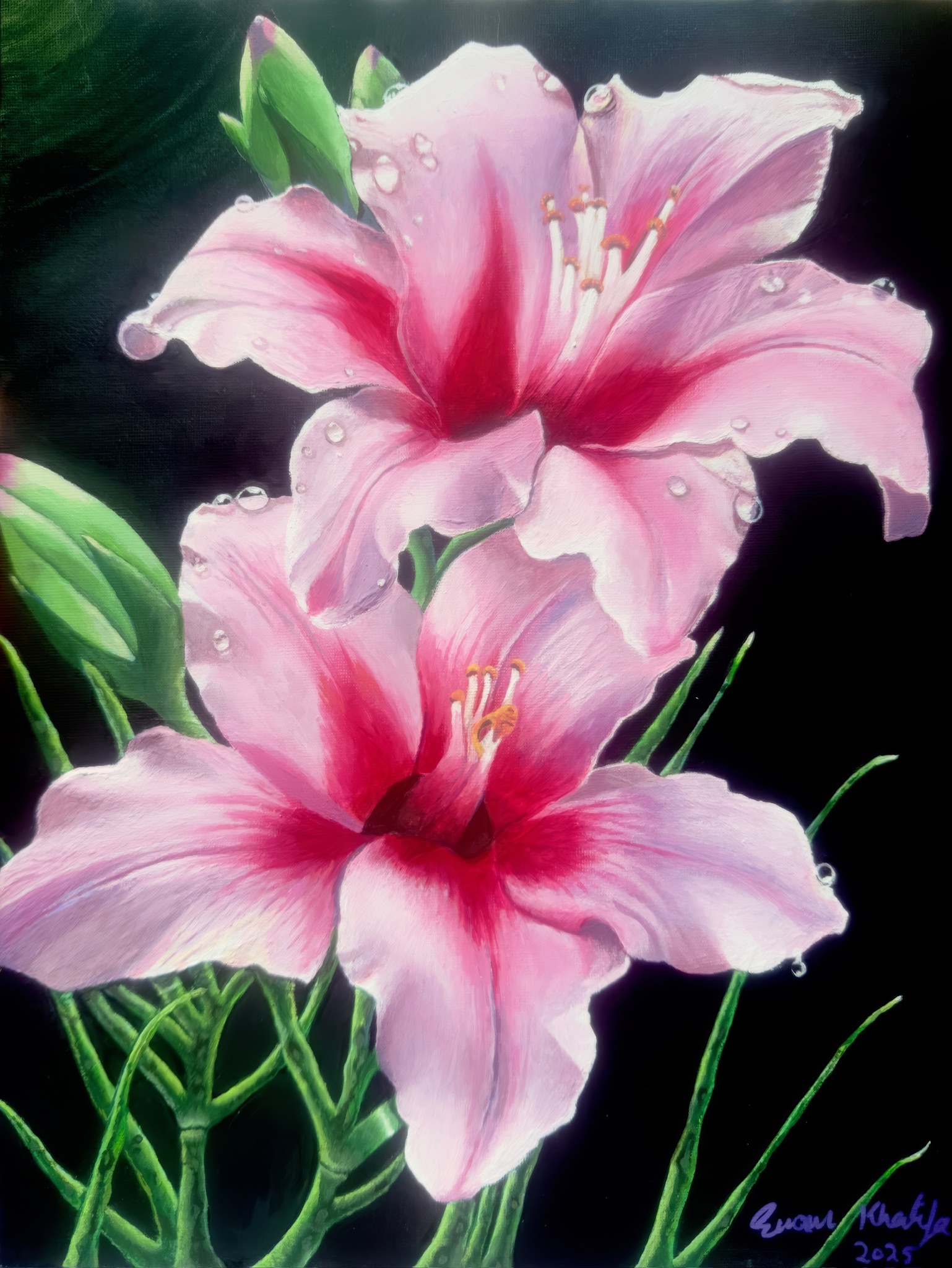 | Biography | I’m Eman Khalifa, an Egyptian–British–American artist based in London, where I’ve lived for the past 15 years. Raised between Cairo and the U.S., my multicultural identity and 30-year career in corporate leadership have shaped a grounded, emotionally attuned artistic voice. I returned to painting full-time in 2024 with renewed purpose—not just to create, but to connect. Artistry Without Limits defines both my philosophy and my practice. Nature, science, colour, and light spark my imagination—whether I’m drawn to the geometry of a city, the drama of a flower, or the meditative calm of an underwater scene. Each piece begins with an emotion or vision that I translate into a palette, developing it intentionally before surrendering to intuition—layering, scraping, and reworking until hidden forms emerge. Every artwork is a piece of my soul, a visual excavation that’s fluid, raw, and emotionally honest. My practice unfolds across three intertwined bodies of work: Elemental Abstraction, Geometric Abstraction, and Contemporary Realism. In my Elemental Abstraction, I explore movement, transformation, and the unseen forces that bind the natural world. Each pour is an act of surrender and control—a dialogue between gravity, fluidity, and emotion. I work with layered acrylics, metallics, and iridescent mediums to capture energy in motion, where colour becomes a living element, shifting and refracting like water or flame. My Geometric Abstraction builds on structure and rhythm—an infusion of logic and spontaneity. Through the interplay of line, balance, and bold hues, I create a sense of motion and optical intrigue, where forms seem to shift, vibrate, and breathe within the viewer’s perception. Influenced by the architecture and visual energy of cities where I’ve lived—Cairo, Los Angeles, and London—these paintings explore how order and chaos coexist within human design. In contrast, my Contemporary Realism interprets atmosphere rather than replicating form. I paint not to reproduce reality, but to evoke its mood—the stillness before a tide shifts, the hush in a sunlit room, the energy vibrating within stillness itself. Through nature, light, and texture, these works reflect serenity, memory, and belonging. Across all three bodies, my art explores dualities: control and surrender, movement and stillness, complexity and simplicity. Whether through oil, acrylic, or mixed media, I seek to create visual rhythms that connect with emotion—inviting the viewer to pause, reflect, and feel. My work has been critically acclaimed by Lee Sharrock for its “quiet strength, remarkable versatility, and evocative use of colour and light across genres.” Above all, I aim to make art that resonates and connects—evoking emotion, sparking contemplation, and bringing depth, beauty, and story into the spaces we inhabit. |