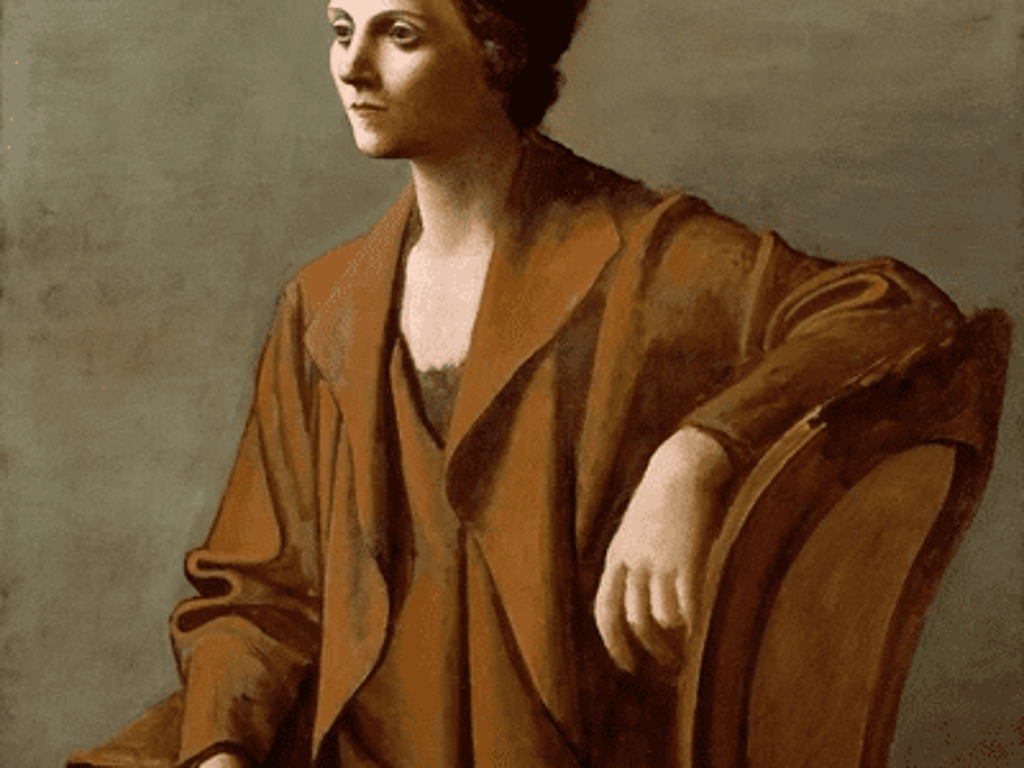 Picasso brilliantly demonstrates his mastery of modern neoclassical painting in this superbly executed seated portrait of his Russian wife, Olga Khokhlova.