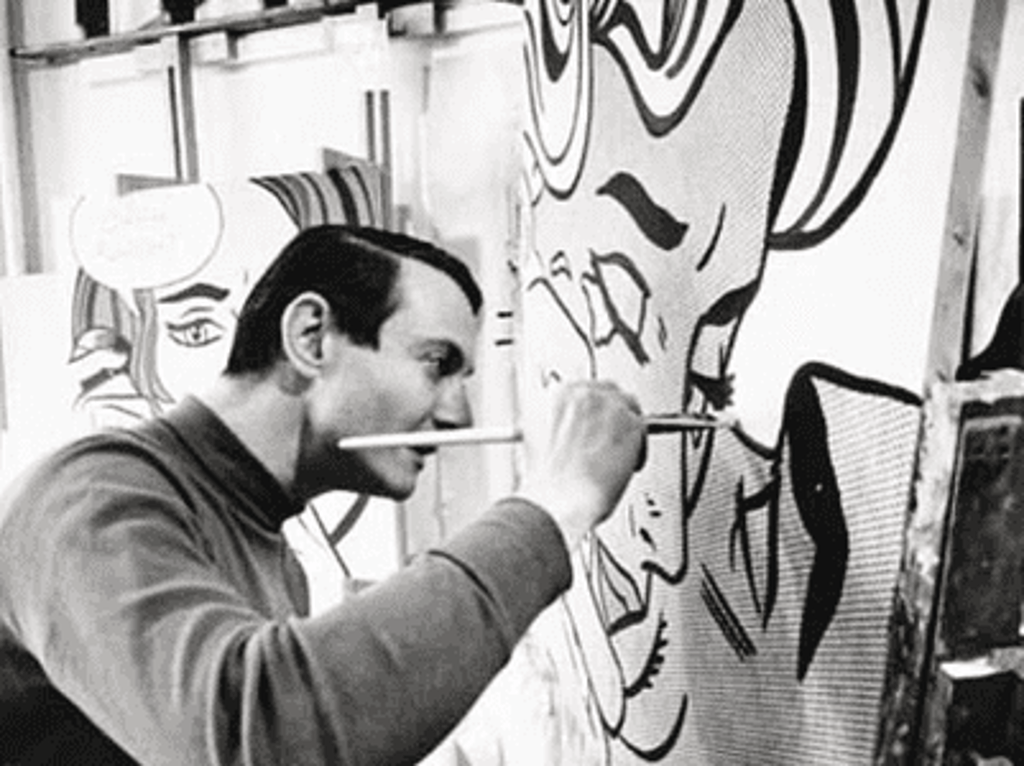 During the early 1960s, Lichtenstein became known as a leading Pop artist because of his paintings based on DC Comics. Robert Rauschenberg and Jasper Johns had previously incorporated popular imagery into their works, but Lichtenstein was the first to focus on cartoon imagery to the extent that he did. Pop art was born as a result of his and Andy Warhol’s work, and Abstract Expressionism as a dominant style was effectively put to rest. Instead of copying comic pages directly, Lichtenstein used an advanced technique that involved cropping images to create dramatic compositions, such as in Drowning Girl, which had the woman’s boyfriend standing on a boat above her. As he did with the comic book panels, Lichtenstein also condensed the text, reappropriating language as a symbol of commercial art and using it to challenge preconceived notions of what constitutes “high” art.