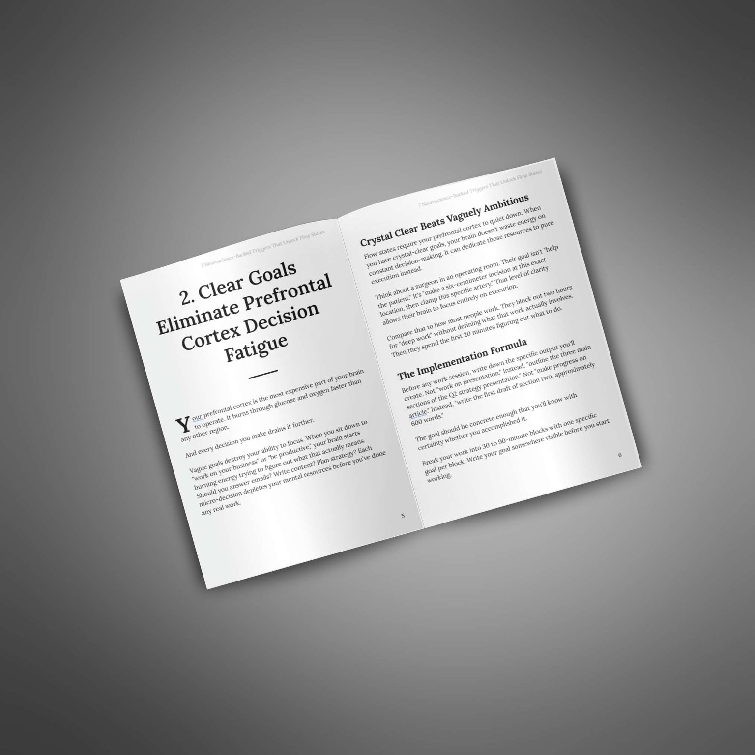 Flow states are not random. They are neurological responses triggered under specific conditions. This resource breaks down the science of focus and peak performance into clear, accessible explanations, showing how simple adjustments can dramatically improve concentration and output.