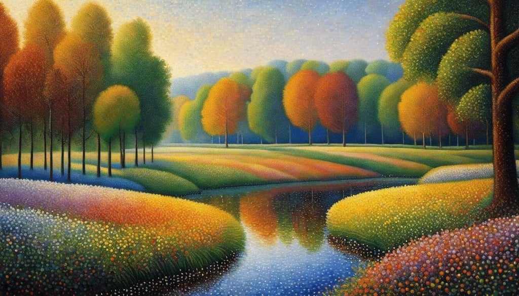 The magic of pointillism lies in its ability to gift the park canvases a splendid multitude of perspectives. Close up, one perceives a constellation of distinct, warm, and cool tones, dancing in harmony yet meticulously arranged. At a distance, these tiny points of colour merge to form cohesive images of natural beauty that seem to pulse vibrantly with life.