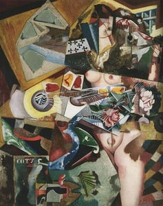 Drawing inspiration from African masks and sculpture, Cubist aesthetics employed geometric abstraction and flattened two-dimensional planes. Picasso’s painting ‘Girl with a Mandolin’, echoes these principles, with the female figure and the instrument dissected and rearranged into abstract geometric shapes.